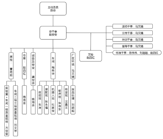 為確保相關(guān)工作順利推進(jìn),公司組建成立了“5S推行委員會(huì)”,下設(shè)干事局,負(fù)責(zé)行動(dòng)的組織協(xié)調(diào)、執(zhí)行和宣傳督導(dǎo)工作。為明確職責(zé)分工,除了健峰老師現(xiàn)場(chǎng)輔導(dǎo)外,推行委員會(huì)通過(guò)召開(kāi)“5S”動(dòng)員會(huì)、組建“5S”工作交流群、制作并下發(fā)了“5S”宣傳手冊(cè)、征集了“5S”活動(dòng)標(biāo)語(yǔ),傳達(dá)貫徹了公司致力于提升整體廠容廠貌和精益現(xiàn)場(chǎng)要求的有關(guān)精神,對(duì)實(shí)施精益現(xiàn)場(chǎng)管理行動(dòng)進(jìn)行了全面動(dòng)員和詳細(xì)部署,加深了員工對(duì)“5S”工作的理解認(rèn)識(shí),促進(jìn)了關(guān)于做好“5S”工作經(jīng)驗(yàn)做法的學(xué)習(xí)交流。